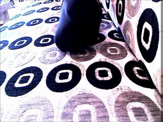 ich zeige mich in schwarzer unterwäsche auf dem sofa.